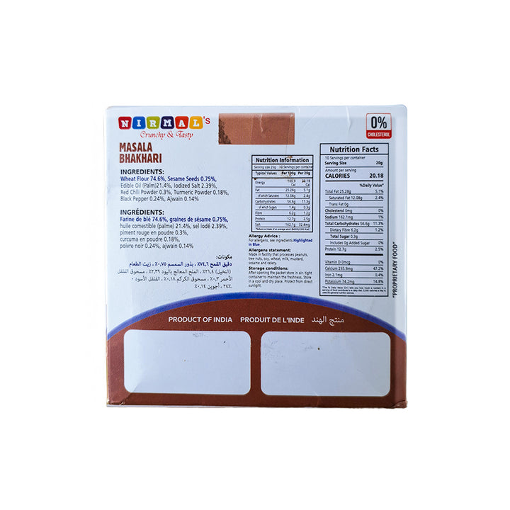- Ingredients: Wheat Flour, White Sesame (Til), Iodised Salt, Red Chilli Powder, Turmeric Powder, Ajwain Seeds, Black Pepper (Mari), Edible Oil (Palm)